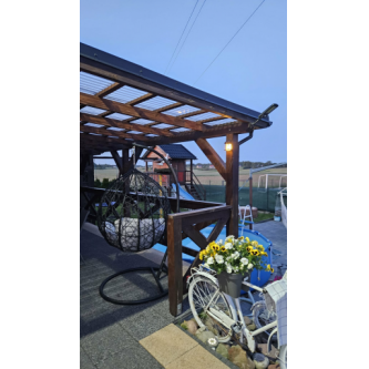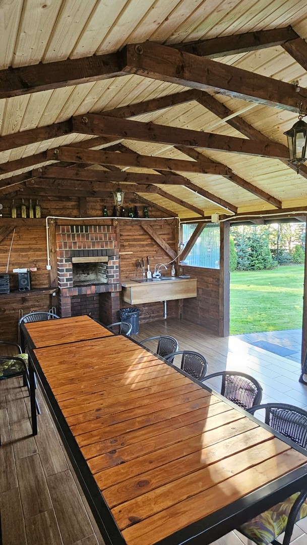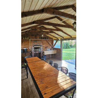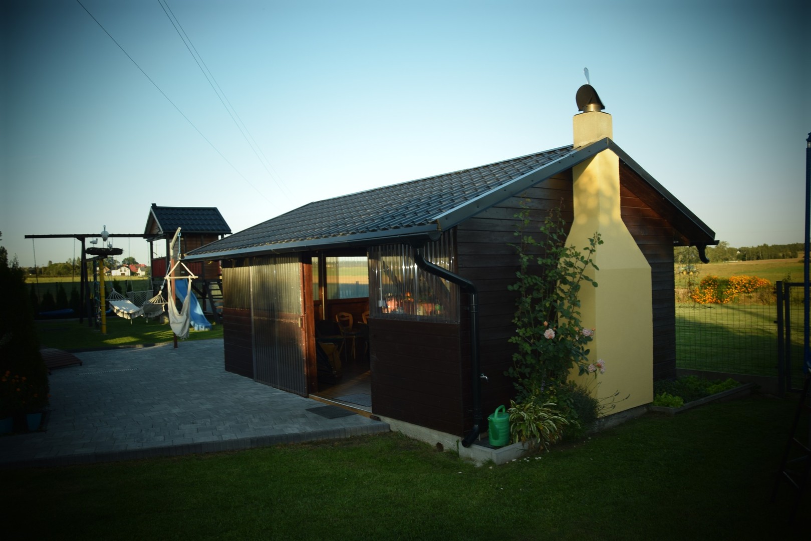 Na terenie posesji znajduje się altana z dużym stołem biesiadnym oraz stacjonarnym grillem.