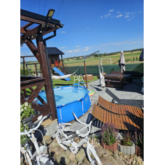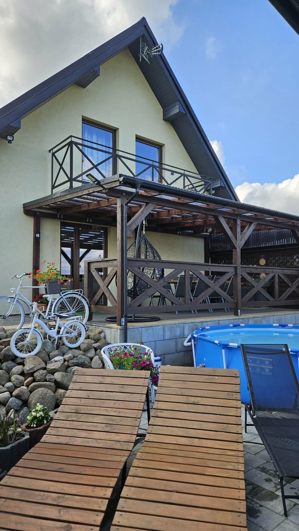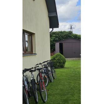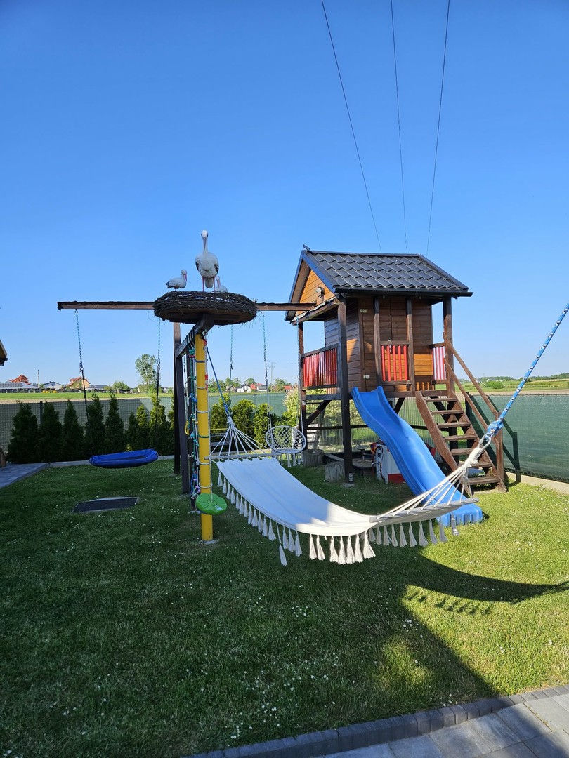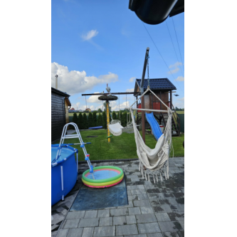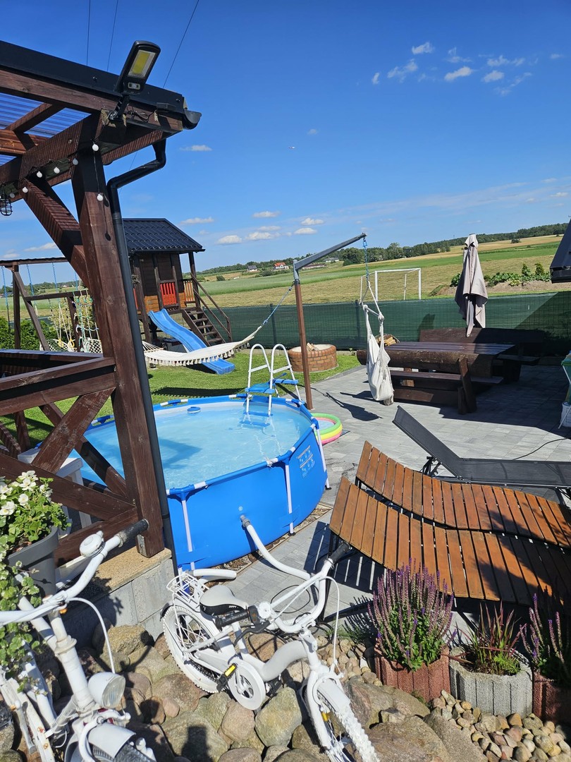 Na miejscu do dyspozycji gości znajdują się : rowery, kijki do nordic walking (2 komplety), plac zabaw, boisko do siatkówki, boisko do piłki nożnej, trampolina, stół do ping-ponga w garażu, piłkarzyki, cymbergaj, biblioteczka, hamak, basen ogrodowyw sezonie letnim, parawan plażowy oraz miejsce na ognisko z kociołkiem, w którym można przygotować potrawy nad ogniem.